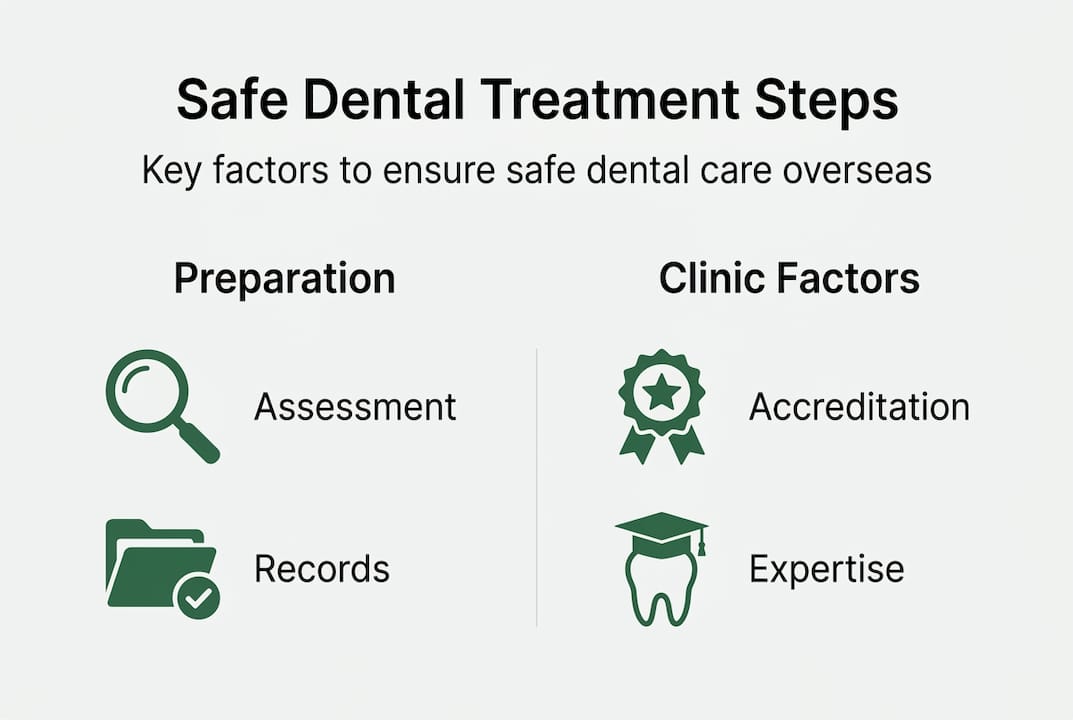 | Local assessment is vital | A dental checkup at home sets the foundation for safe and accurate procedure planning abroad. |